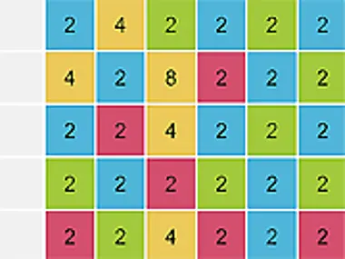 The player is presented with a random grid of coloured tiles, each tile with the value of two. Two neighbouring tiles of the same colour can be joined together to double the value. Joining two blue tiles of value four will result in a single tile of value eight.