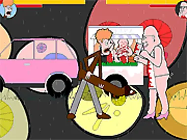 A strange fighting game of old naked guys and long armed grannies.