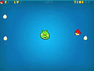 Be ready for a new adventure with Angry Birds. This time red bird are hungry. Collect as many eggs without getting caught. Handle the red bird with your mouse and then eat pigs around you. Try to stay away from pigs when you're little. Revenge and eat all green pigs when are bigger!