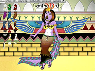 Create a custom anthro bird character using the program. You can recolor parts that have the color picker icon available. Choose from multiple backgrounds in this anthro dress up game.
