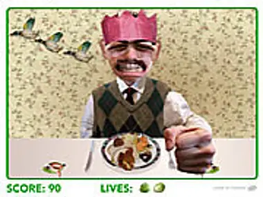 Use the left and right cursor keys to defend your christmas dinner from attacking sprouts.