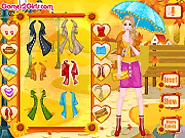 Ellen likes the weather when it's rainy. Taking a long walk in the park and watching the autumn colors of the nature make her feel so good. During these walks she just needs her rain boots and stylish umbrellas. Let's dress up Ellen and choose the necessary accessories for her.