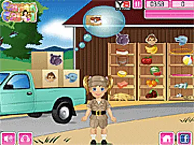 Baby Emma is going to the zoo today! She will be helping out Carol. First you must do some preparations: dressup Emma with a lovely zookeeper outfit and help her to get all the material and food into the zoo jeep. Then you will head out to the hippo. He is dirty and you must help Emma to clean him. After that, you will go to the monkeys and feed them with banana because they are very hungry. Finally you must help Emma to assist in the dolphin show.