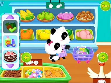Welcome to the biggest supermarket in the Town! Baby and Mommy Panda have to do the supermarket shopping today! Play together with friends and family, and help your favorite panda to do shopping in an animal's Supermarket. Various shopping activities waiting for you in this supermarket! Dress up Baby Panda in the cutest summer outfits.Watch funny reactions of the customers who you have put on makeup for. Decorate yummy birthday cake as you like! Slice sausage, pour salad and make awesome hamburgers! Play this fun game only on y8.com