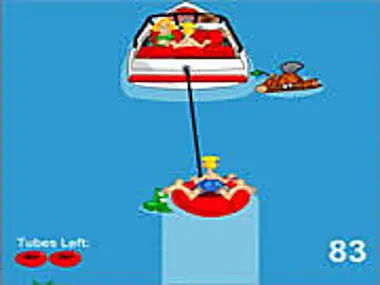 Can you help Camp Counselor Bob ride his ski biscuit through dangerous waters?