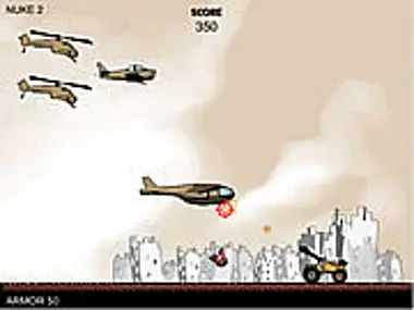 Battle buggy is a little car equipped with a bug gun. The objective is to dodge incoming fire while shooting down the air raid. From time to time your buggy is leveling up, and you get to upgrade your armor, machine guns or nukes.