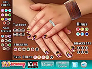 Is your mom busy and has time only for applying nail polish to your nails? Don't worry. This game will give you all the tips to beautify your hands including tattoos. And then, you can decorate moms hand too. Enjoy the game.