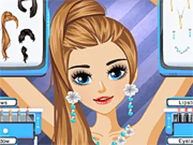 Sophie is a mesmerizing and beautiful dancer who can perform both sensual veil dances and up beat shows with audience participation. She's a super talented belly dancer who belongs to Vancouver's longest standing professional belly dance troupe and by far the most beautiful girl in the troupe. Today she's going to show off her perfect belly dance in front of everyone gathered here to see her and she needs your help for a complete makeover before going up on stage! Rummage through her glittery collection of chic belly dance outfits, have her try some of them and pick out your favorite to dress her up. Then make sure you style up her beautiful long hair, too and then complete her charming look by choosing the most sparkling accessories that you can find in her jewelry collection. Enjoy!
