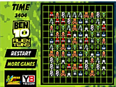 Match ben 10 aliens of the same kind as quick as possible. the aliens can be matched only if they can be connected with a line which turns at most twice.