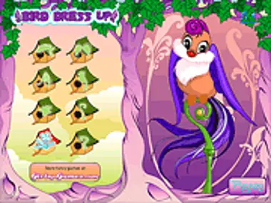 Help this bird strut his stuff with some truly fancy feathers!Click on the different birdhouses to see all the birdy dress-up options. Click the house with a "?" to generate a random look. When you're done, click Ready to save or print.
