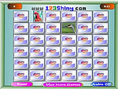 Find and match the exact pair of birds hidden behind the boxes. A correct match adds 100 points whereas a wrong match deducts 5 points. Click the boxes to open and close.