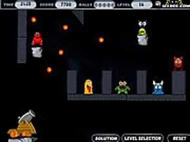 Destroy all the monsters by using the canon and earn score. Remember you have only five balls to hit them. Play all levels and win the game.