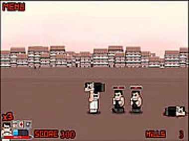 Starts off as a fighting on the street game and progresses to throwing bodies, boxes and shooting.