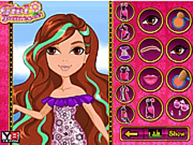 Briar Beauty has long, wavy brown hair with pink streaks, partially tied into a flower-like bun on top of her head. But she tired of her typical hairdo so she wants you to give her a complete hair makeover. First give her hair a washing and then choose a beautiful new haircut style and color. Finally choose the perfect dress and some lovely makeup.