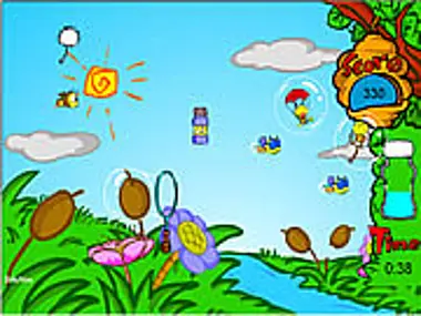 Blow a bubble around a bug. The more bugs you capture in a bubble the more the points you get. Get more more time by capturing clocks and get more bubble juice when you capture a bubble bottle.