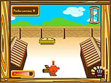 The aim of the game is to free the chicken by tossing them out of the fence.