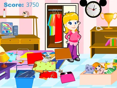 She's got a messy room. Help her get organized! Put scattered items on its right place.