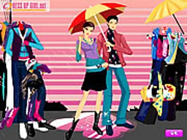 This nice couple likes walking in the rain to feel the romance from falling raindrops and its sound. They also like to see the rainbow after the rain. Could you match the right clothes for both of them?