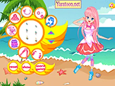 Dress up this girl in the beach , choose to dress her with dress or skirt, also choose the hair style and an accessories and shoes. let her be smiling all the time.