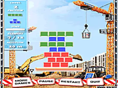 Build your own construction by placing blocks one by one in such way that the architecture is stable and not shaky. Move your mouse to the top of the screen to take new figure. To rotate the figure click the mouse left button. There are 20 levels with variety of items.