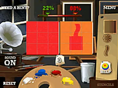 Make a perfect copy of the image from the right side. Drag from the right-side menu the needed objects. Obtain a color mixing the colors from the inferior menu.