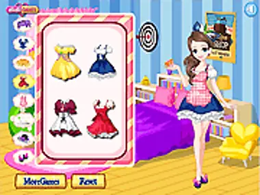 Liz works in a cafe downtown and she has lots of responsibilites for the day. First, make sure she puts on a nice uniform to get ready. Then, take her to work and help her get the cafe ready for a busy day by cleaning up all the mess the customers made yesterday.