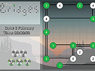 Every day new Bridges puzzle levels in four different sizes/difficulty degrees. Bridges is also known as Hashiwokakero or Hashi. Connect every island, such that any island can be reached from any other. Each island contains a number that shows you how many bridges leave that island. Up to two bridges can connect islands together. Bridges can only go horizontally or vertically and may not cross each other.