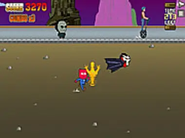 Dan Devil is an action packed game where you have to stop a prison outbreak - IN HELL! You have less than four minutes to stop 11 bosses and minor baddies! Run, punch, jump and yank baddies from the sky before they get away!