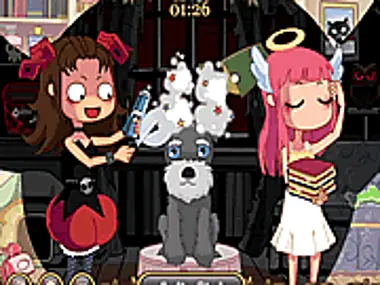 Play as a devilish hairdresser who loves wrecking the styles of the little doggies who come to be groomed in your salon! Cut and colour the puppies’ fur to suit your own style, but watch out you don’t get caught by the little angel working with you. Get stuck into those masterpieces as soon as her back’s turned, but don’t let her see, else she’ll take you to angel prison!