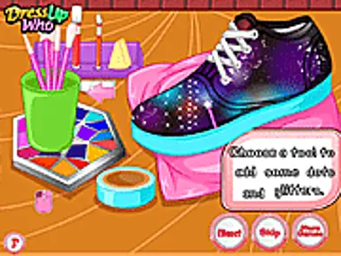 Galaxy shoes are probably the coolest must have items of this sunny season, but what if the ones you use on a daily basis are just a trivial pair of black snickers? Well ladies, I suppose you should learn how to give them a splash of color and some glittering bits while playing latest shoe decoration game called ‘DIY Galaxy Shoes’! It’s easy and you are going to have so much fun, that’s for sure! So, the first thing is to make sure that you have the right black shoes prepared for this crazy shoe decoration session and then you have to make sure you have all the tools prepared for the fun part. Check to see if the right brushes are there, check the palette of colors as well and then start using your favorite shades in order to add a splash of color to these trivial pair of snickers. Once you’re done with the coloring part, you ladies can also choose from a wide variety of tools the ones you fancy the most to design some stars or sparkling dots on your brand-new pair of galaxy shoes! Now that you have the main accessory of your jaw-dropping look, why don’t you ladies go to the next page of the game and choose the best outfit to pair them up with? Have a great time playing that fun shoe decoration and dress up game!