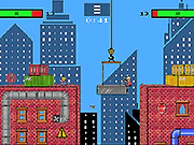 "Duel of Builders" is a great dueling game. You can fight with your friend or against the computer! Are you ready for this fun duel? Beat the enemy by throwing objects and watch out for your health bar. Enjoy playing this game here at Y8.com!