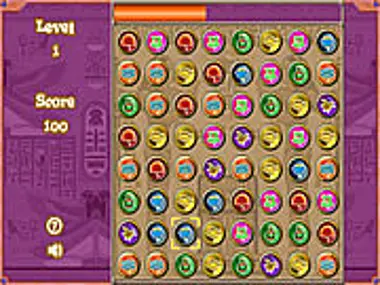 Egyptian Style puzzle game. Destroy Egyptian icons by creating lines of 3 or more icons of the same kind. You can move the icons by using the mouse to click and swap adjacent icons.