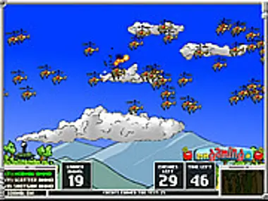 Fire the turret at the flying enemies. In later levels avoid your own pilots. Lots of upgrade options