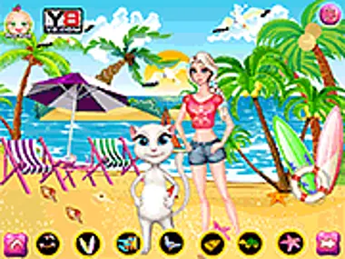 Elsa and Angela happened to meet on the same island in their summer vacation. Since they are such good friends Elsa and Angela decided to spend the day together. Create the perfect setting for the two friends and decorate the beach with fun and special vacation items. Enjoy!