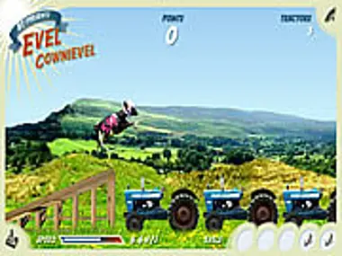 Help Evel Cownievel run fast enough to clear the tractors.