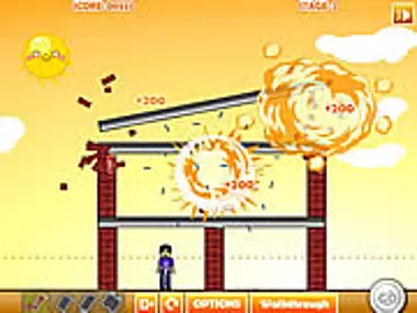 Use limited sticks of TNT to collapse the building to get the smiley on the ground.