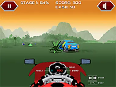 Ride your bike through 10 increasingly dangerous and faster stages, avoiding crashes, and blasting the opposition to earn cash.