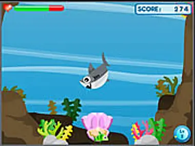 Can you help this poor little fish to stay close to the beautiful pearl? Watch out for that mean shark, and other sea creatures.