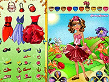 This little fairy struts her stuff on the flowerwalk! Use the Mouse to dress this Floral Fairy. Click on the symbols at the bottom to change her skin tone, eye color, and lipstick.