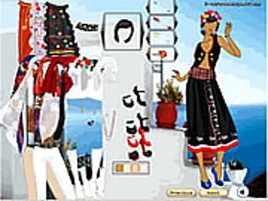 This is a real native folk fashion of Greece, Can you help these girl to choose different kinds of folk dresses.