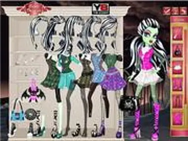 Frankie Stein is the daughter of Frankenstein, she is 15 days old and she has a cute puppy pet named Watzit. Her Monster High girl friends consider her very friendly and with the perfect figure for fashion. Frankie misses her parents a lot so she has decided to go and visit them for the weekend. Check out what fashionable, girly and fabulous outfits you can come up with for Frankie to make her parents proud of her. Enjoy!