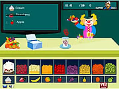 Ever had a stint working in a fruitful job?? The orders pile up on the board. You have to make smoothies by adding cream and then by adding the correct number of toppings. That's what fruity shake is all about. Enjoy some free brain training and go mix those smoothies! In level 4, you'll need to drag the smoothie to the blender and back again.