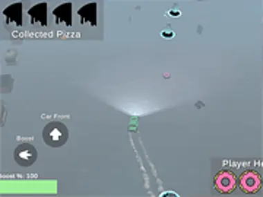 Ghosts & Pizza & Donuts & Driving, the unity webGL game which you can play on y8. Your main task is to collect 5 pizzas, which are lost somewhere in this abandoned town. Drive your car while avoiding ghosts and collect donuts to heal damage. Player vehicle always moves forwards and switches direction of movement when interacting with the enemy ghosts in the game. Good Luck!