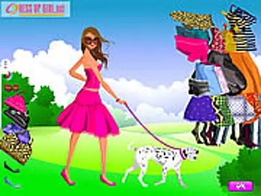 This girl is going to walk with her lovely pet. She loves her dog very much, do she wants to get him well-dressed. Can you help her? Can you give her some advice for her outfit, also?