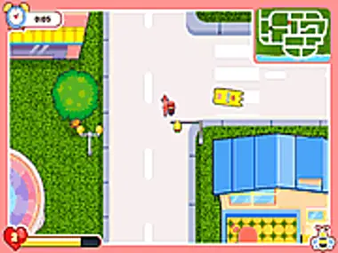 Your location is marked by a green dot on the map. Swing by to pick up your friends at the yellow dot, then drive to the red dot to drop them off. Use the map as your guide, look out for traffic, and don't be a slowpoke or your friends will be sad!