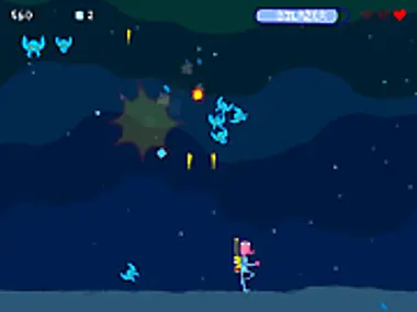 It’s a goofy mashup of Galaga-style shoot-em-up, simple platforming action, and Saturday morning cartoon. Help Glorkian Warrior and his trusty Super Backpack fight against an endless onslaught of alien creatures, and be prepared for anything… the Magic Robot appears when you least expect it, and might shower you with exploding basketballs… or kittens! Collect energy crackers and power up an awesome arsenal of double lasers, triple lasers and tennis balls while the invaders hypnotize you with their mesmerizing attack patterns. Perhaps you may even uncover the legendary Flarf Gun and save the world.