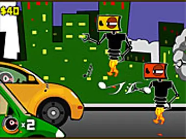 Shoot the weird creatures that are ahead of your car. Kill them before they attack your car.
