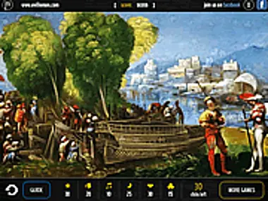 Hall of Arts 10 challenges you to find all 130 hidden objects scattered across a cool painting. Choose between 2 difficulty modes and collect all the lost items. The hard mode will give you more points for each found object. Enjoy Hall of Arts 10!