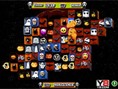 Halloween Mahjong - Match pairs of identical tiles to remove them of the the board and reveal the tiles under or next to them.The game is over when you have no more identical tiles or you removed all tiles from the stage. If you are stuck click on the shuffle button to shuffle the board.