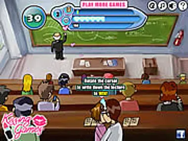 You and your sweetheart are in class together and the professor is so boring! Since you are in the back row, sneak a kiss while no one is looking.